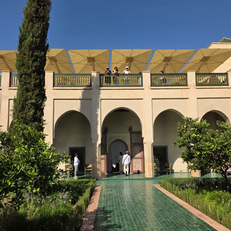 The driver took us to the starting point of the tour in the Jewish Quarter of the Medina, the location of the Bahia Palace. The Bahia Palace is a former royal palace, and the former residence of the French Resident-General during the French Protectorate of Morocco, and occasionally still used by the Moroccan king to host foreign dignitaries. It features a large Grand Courtyard and Harem, the ornate and traditional ‘Small Riad’ and the white marble small courtyard, and the Grand Riad.